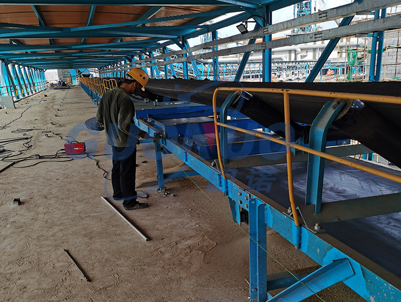 選擇合適正確的位置后,工程師現(xiàn)場安裝調(diào)試過程中仍遇到了許多問題,比如因輸送機支架問題造成輸送機震動較大,在每條支腿上加固;皮帶跑偏比較厲害等問題。不過工程經(jīng)過分析,找到問題點,都已經(jīng)得到完美解決,皮帶秤也順利進行安裝中。