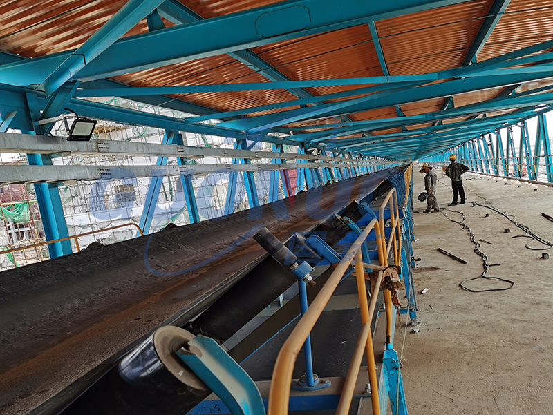 皮帶秤的安裝位置不是隨便選擇的,要充分考慮物料的擾動和皮帶張力的變化,同時還要考慮周邊機器、天氣變化等因素。皮帶張力的大小與皮帶速度、物料輸送量、輸送機長度、輸送機所輸送物料提升高度等因素有關(guān),皮帶速度越高,物料輸送量越大,輸送機長度越長,輸送機所輸送物料提升高度越高,則皮帶張力越大。而對同一條皮帶來說,越靠近頭部滾筒,皮帶張力越大,在物料輸送量變化和其它條件變化時所引起的皮帶張力變化也越大。越靠近尾部滾筒,皮帶張力越小,在物料輸送量變化和其它條件變化時所引起的皮帶張力變化也越小,所以我們選的也是張力變化比較小的位置。同時,現(xiàn)場輸送機較長,還有其他設(shè)備造成震動等情況也會形成干擾因素,同時有一段在戶外,因此工程師選了皮帶張力變化較小而且遠離其他設(shè)備,在搭棚下的位置,減少天氣的影響。