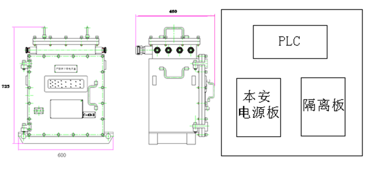 KXJ660(A)礦用隔爆兼本安型可編程控制器(以下簡(jiǎn)稱控制器)主要由PLC,本安電路板等組成,通過(guò)邏輯編程實(shí)現(xiàn)機(jī)電自動(dòng)控制,作為井下自動(dòng)化管理控制核心。