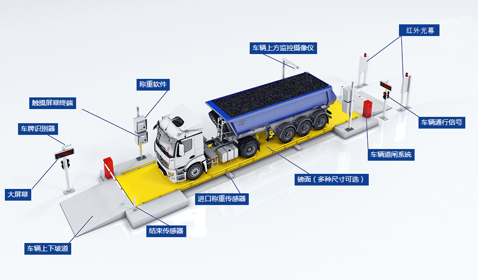 單向自動(dòng)稱(chēng)重軟件1套、控制箱1臺(tái)、采集卡1張(可選)、音箱1對(duì)、電腦1臺(tái)、打印機(jī)1臺(tái)(可選)、道閘1套(可選,包括車(chē)檢和地感)、紅外光幕2對(duì)、刷卡器(射頻卡和ID卡)1臺(tái)、紅綠燈1臺(tái)(可選)、電子顯示牌1臺(tái)等。